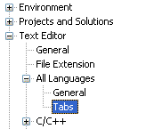 Optional Step: Set the tab indent sizeStart Visual Studio and select Options from the Tools menu. Select and expand the Text Editor item, select All Languages, and select Tabs. Optionally, you may want to select the Insert spaces radio button: